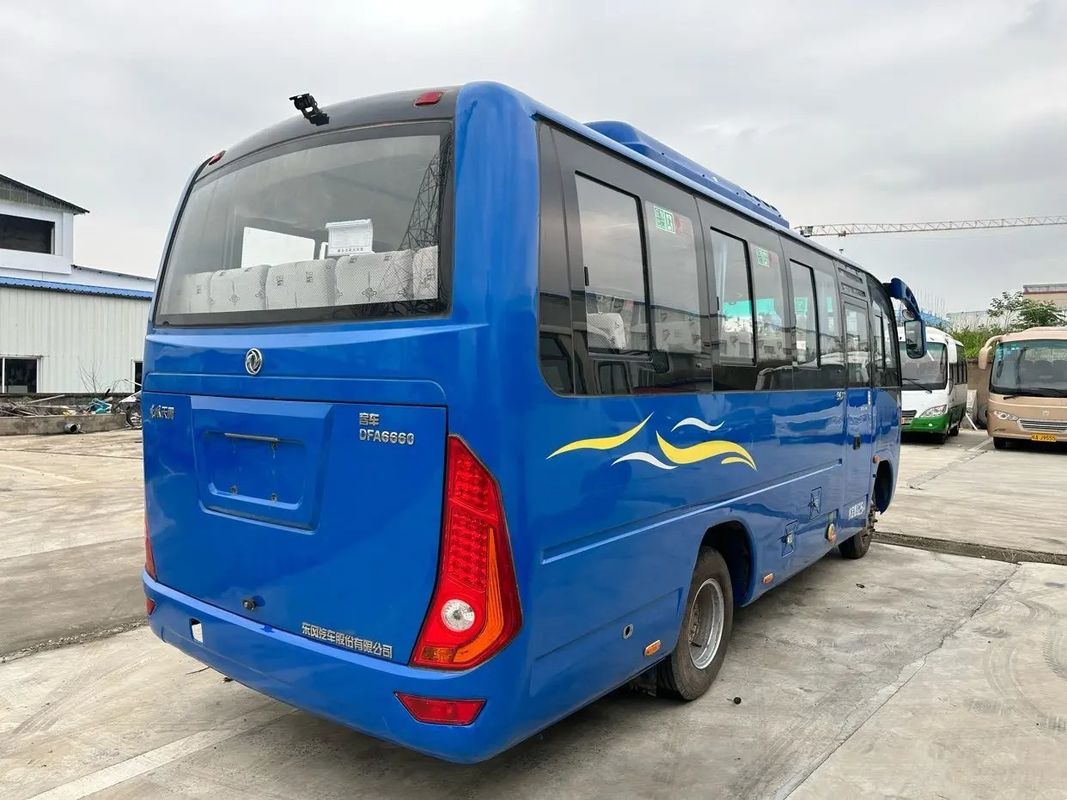 Used Small Bus Blues Color 25 Seats Yuchai Engine 130hp Sliding Windows Left Hand Drive Dongfeng Bus DFA6660